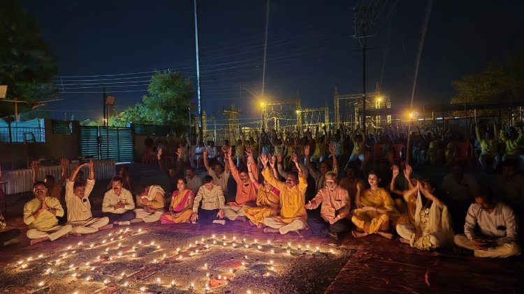 "खंडवा में बुद्ध पूर्णिमा पर राष्ट्र शक्ति जागरण दीपयज्ञ का आयोजन, 551 दीपों से की गई भारत माता की आरती। विधायक कंचन तनवे व गायत्री परिवार की सहभागिता।"